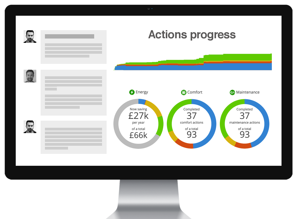 Once the Actions have been completed by the building management team it is possible to calculate the benefits and savings made to measure and report success. This can be viewed online.